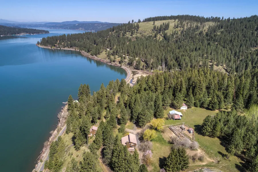 This rustic, secondary waterfront home on 8.6 acres has incredible lake views and a very peaceful setting in the country. A 1 bed/1 bath cabin/guest house (built in 2003) and the main house sit on the same parcel, but it already has natural lot division lines so the properties have potential to be sold separately. Both homes have electric water and propane heat with their own propane tanks and independent septic systems. They have also been restained recently. Once a waterfront home, this property sits next to the Trail of the Coeur d'Alenes. There is also a sportsman's access with a boat launch w/in a half mile of the home for easy lake access. Several fruit & nut trees, assorted berries & fenced garden, gardener's paradise.