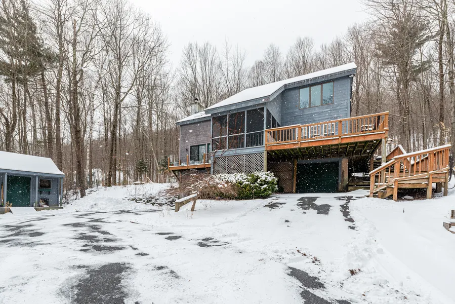 Welcome to this expansive residence conveniently located just minutes away from the village of Arlington, offering easy access to Manchester and Bennington. Nestled in a tranquil neighborhood, this property boasts ample living space highlighted by hardwood floors and a cozy wood-burning stove in the formal living room, which can easily serve as a primary bedroom. Upstairs, three bedrooms await, accompanied by a versatile bonus room, all complemented by convenient basement storage with two bay garage. Bask in the serenity of morning sunlight on the front porches, including a screened-in section perfect for peaceful relaxation. The spacious back porch offers an ideal setting for entertaining guests. Throughout the property, raised beds and flourishing berries contribute to the picturesque landscape. Additionally, two outbuildings provide extra storage, workspace, and even a chicken coop. W...