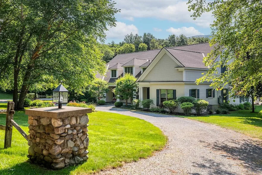 Tasteful Grace... Timeless Style... Easy Comfort... Manchester's River Road leads to this Extraordinary 4900 SF Riverbend Residence embracing the most impactful Green Mountain views from every room with window walls that bring the outdoors in. The casual open flow floorplan transitions flawlessly over hardwood floors taking in abundant architectural detail from deep crown moldings, custom built-in cabinetry, and see through fireplace. Enter the spectacular two story light filled foyer displaying a beautiful staircase and full front to back vision of the sweeping Mountains beyond. The handsome study and dining room are located to either side, with the impressive coffered ceiling living room beyond calling to relaxation and dreamy garden to mountain vista's. Open Kitchen/ Dining Great Room boasts three window wall breakfast room and sizable granite island kitchen with abundant cabinetr...
