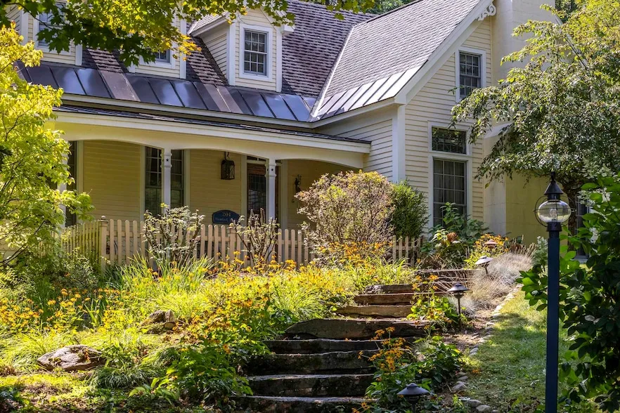 Sitting high atop a quiet cul de sac, with beautifully landscaped flower beds, this unique Mark Breen built home features captivating architectural interest at every turn. Stone steps lead to a covered front porch. Elevated & vaulted ceilings, deep crown moldings, stained glass accent windows, wide plank flooring, and large archways ensure an open concept w/ transitional flow. Spacious, flexible living spaces allow for living/dining options. The two story foyer entrance offers a dramatic welcome. All living spaces are filled w/ abundant, natural light. Enter the living areas where 2 fireplaces are centered for warm gatherings. The large dining area accommodates a 9 table for large party dinners. Walk out onto the stone porch overlooking a tranquil neighboring pond. The custom butternut kitchen w/ a unique stenciled floor centers around the kitchen island as the hearth of the home. There is a large sink window wall and a multitude of pantry storage. In addition to the spacious primary suite w/ a walk-in closet and jacuzzi tub, there is an overflow day bed/study room on the main floor w/ a separate bath. The main floor also boasts a lovely, easy access laundry room w/ a laundry sink, counter and cabinets providing convenient single floor living! Upstairs are 3 uniquely designed bedrooms, separate linen closet and 1.5 ba. The lower level has tons of storage, a bathroom and a 2 car garage. All Manchester amenities close by!