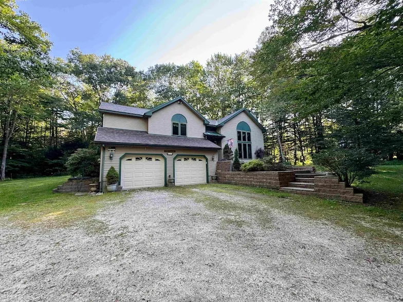 Private and gorgeous home situated on 3.54 acres in Shaftsbury. Offering 2 bedrooms with a full primary suite (large primary bathroom and walk in closet), 3 total bathrooms and modern design. Enjoy the large airy and open living room with fireplace, modern kitchen with plenty of cupboards and marble counter top and dining area with slider to the private backyard and multi-level deck. Many amenities included with this home. 2 car built in garage, workshop room, finished basement family room and laundry room. Includes hot tub, shed, ad in ground pool with stamped concrete patio. A must see home.