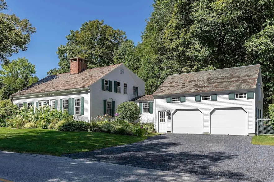 Authentic 1800's center chimney, hand hewn post and beam cape on coveted River Road within a short walk to the Battenkill River! This beauty has had the fireplace chimney's lined, the eat-in "keeping room" kitchen updated nicely, and the plank flooring is all intact! 12 over 12 windows, chair rails, exposed framing, and original doors and hardware are exceptional. The kitchen has a Dutch Oven large fireplace that is the hearth of the home and French doors that open to the screen porch. The adjacent office could also convert to a great walk-in pantry. The living room creates seating around a second fireplace and there is a main level primary suite option with third fireplace and en suite bath. Upper level jack and jill bedrooms and another second primary suite with walk in closet and bath comforts needs. The basement has been foam insulated... the mechanics are in great condition. The attached two bay garage moves through a mudroom, laundry and powder room to the kitchen. The cottage is also very enchanting as studio or improve to accommodate year round guests. This property offers a lot of storage, over the garage... a private screened in porch and level playing yard add to the enchanting spaces. This house is a true antique delight! Tenant occupied requires 24 hour notice... Mountain e make memories!