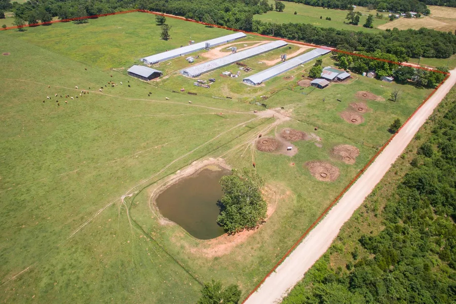 You can't find 80 acres tracts like this just anywhere. Two good ponds, well water, corrals, mostly open pasture in native grasses, cross fencing, county road access on two sides, and multiple out buildings. The chicken houses are still in operation but Simmons Foods will not give contract to a new owner. The barns are at the end of their usable economic life. The home has had some good remodeling in recent years and the seller continues to improve it a little at a time. Come see!