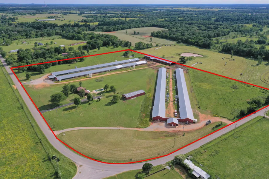 Hen farms in very good condition like this one and as large as this one are hard to find. Here is your opportunity to get into the contract poultry business at a high level - $400,000 annual gross income with a Simmons Foods contract. We need breeder hens for broiler chicks and so with this farm you can become an important part of the food chain supply. You or your workers will gather eggs twice daily for a 10 month flock and then be out of birds for about 3-4 weeks and restart the cycle. Pay is per dozen eggs and pay from Simmons is weekly. Nice brick home with 4 beds and 2.5 baths has been updated. Stacking shed and outbuildings are a great asset. Call us and we can explain more!