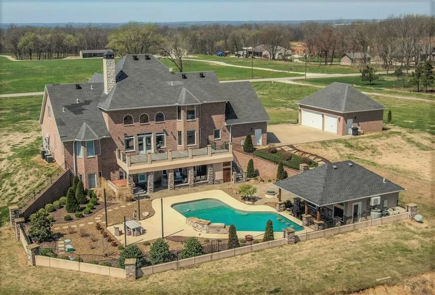 Welcome to your dream home!!! This stunning 6 bed, 5 ½ bath home sits on 9.9 acres with a country feel while still being close to town. The resort style backyard is designed for entertaining; featuring large heated pool, hot tub, multiple lounge areas both covered & open, outdoor gas fireplaces, beautiful pool waterfall, pool house currently used as a workout facility, an outdoor kitchen w/ swim up bar & a huge 2nd story balcony overlooking this backyard oasis.