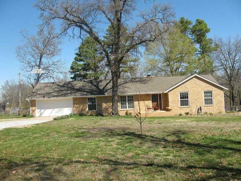 For more information, contact Misti Stephens at (479) 957-4232. Visit http://www.crye-leike.com/rogers/730501 to view more pictures of this property. All brick home with updates including hardwood floors in kitchen & family room. Formal living room and formal dining room. Wood burning fireplace in family room. Situated on 9.88 acres is an ideal location for horses or animals. Barn has horse stall on the back. RV pad with its own septic system for draining only. Park-like setting in the backyard with a child's playhouse and nice patio great for outdoor entertaining. Front deck is composite wood with built-in bench. Peach, pear and apple trees.