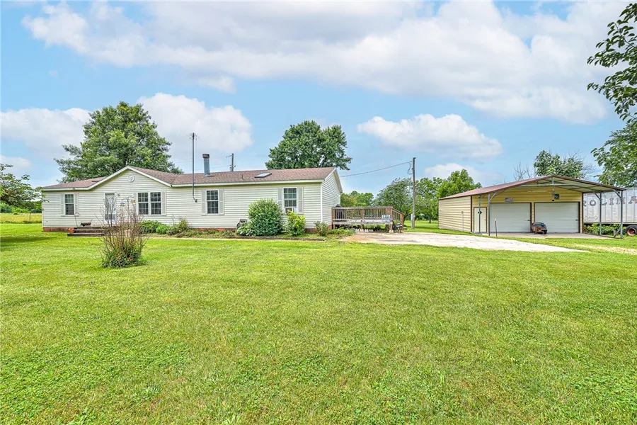 Magnificent 5 acre m/l. Fruit trees, apple, pecan, walnut, pear... Beautiful tree lined driveway. Country living at its best. Newer shop building with concrete floor, and electricity. In the county just on the west side of Cave Springs. Well water with city waterline run to the house just needs meter. Level land with plenty of room for another house or 3, cows, horses, ect... Bentonville schools!