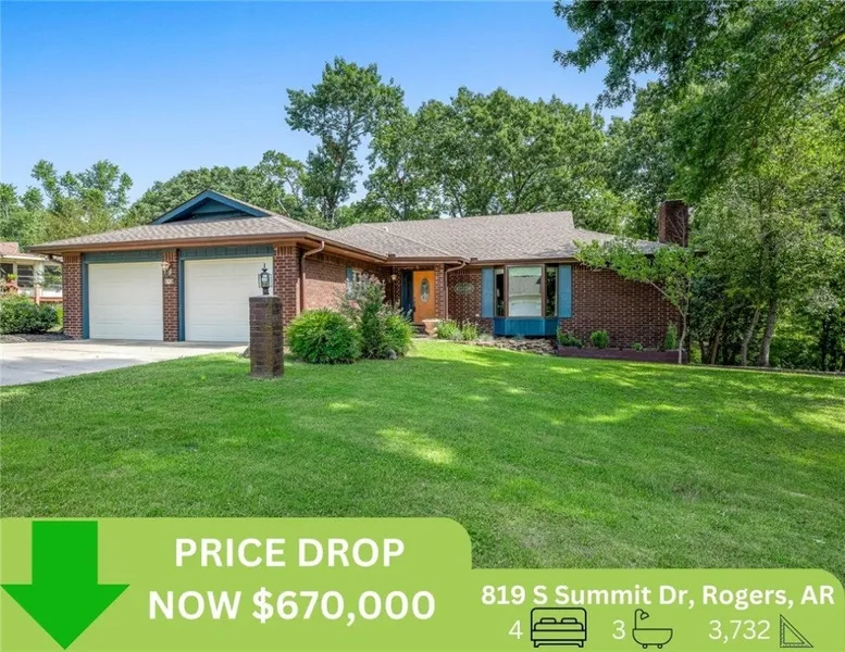PRICE REDUCED! Now $670,000! Discover your next home in the Summit Heights neighborhood, ideally located near downtown Rogers, Lake Atalanta, and Beaver Lake. Nestled on a peaceful cul-de-sac, this custom-built gem combines convenience, privacy, and energy efficiency. Built with 2x6 walls for superior insulation and solar tubes that brighten the main level with natural light, this home is as smart as it is stylish. The 2-level floorplan is a great option for multigenerational living or rental income as each features an oversized living area with a wood-burning fireplace, kitchen, primary ensuite, and secondary bedrooms. Two flex spaces offer endless possibilities for an office, gym, or studio. Relax on the expansive 56' two-level covered deck, providing a treehouse-like retreat. A private lower-level entrance and secondary parking area add even more versatility. Don’t miss this unique, e...