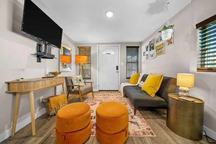 Welcome to the Tiny Tangerine, a charming 1-bed, 1-bath tiny home in the heart of downtown Rogers! Bursting with personality, this cozy retreat features delightful tangerine-themed details throughout. Currently a thriving short-term rental, it’s a fantastic investment or the perfect private getaway. Designed for both comfort and efficiency, it offers stylish finishes, a functional kitchen, and a warm, inviting atmosphere. Tucked away for privacy, the home is accessed from the alley behind the property. Just minutes from downtown shops, dining, and entertainment, the Tiny Tangerine is a one-of-a-kind gem!