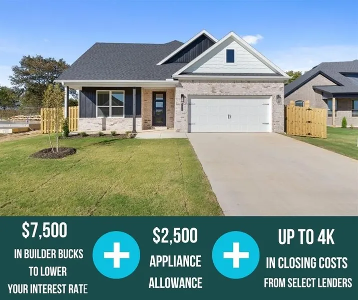 Step into the Stork Plan where LVP flooring runs through the living area, kitchen, and hallways, and the kitchen is a stand out feature of the home. Offering generous counter space, ample cabinetry, and a large walk-in pantry with built-in shelving. Stainless steel appliances bring a modern touch to the kitchen. A composite granite sink combines style with durability. The Stork Plan offers 4 spacious bedrooms, 2.5 bathrooms. The open-concept layout creates a seamless flow between the kitchen, living, and dining areas, making it perfect for everyday living and entertaining. The primary suite includes a private bath and walk-in closet for added comfort. Enjoy outdoor living with a ceiling fan and TV hookup on the back patio. For a limited time, Lower your interest rate with $7,500 from the builder + $2,500 appliance allowance + up to 4k in closing costs from select lenders. For a total o...