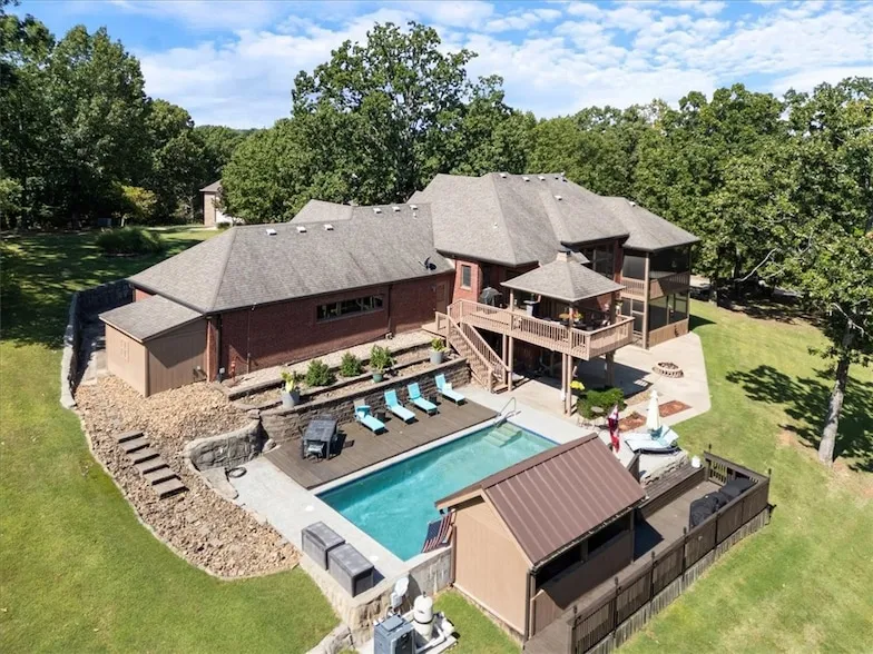 ~Motivated sellers~ New paint in entry, dining room and downstairs and new carpet! Come check out this beautiful, secluded, well maintained home in a quiet neighborhood just minutes to Beaver Lake. The large gourmet kitchens with tons of storage flows openly to the living room. The primary is situated on the main floor and shares a fireplace with the bath. Primary also has a large screened in private deck. On the lower level you will find 2 additional bedrooms, an office with a closet, a second living area with a fireplace, game room and kitchenette/bar area. Walk out of the basement to the gorgeous inground heated pool with a swim up bar. This house is an entertainer's dream! The HOA does have a community boat dock on Beaver Lake, that is available for owner and guest use. Winter views of Beaver Lake. Investors? This home can be used as a STR, however, no watercraft can be parked in the driveway or on the street. Only 10 minutes to downtown Rogers, 25 minutes to Walmart Home office and a 45 minute drive to Eureka.