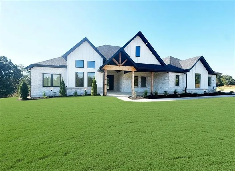 Located in Serenity Ridge, NWA's newest gated luxury subdivision, this beautifully designed 2-story home sits on a spacious 1-acre lot and offers the perfect blend of luxury and comfort. Featuring 5 bedrooms, 4 bathrooms, and a dedicated office, this home is ideal for both entertaining and everyday living. The kitchen boasts quartz countertops, custom cabinetry, and upgraded stainless steel appliances. Enjoy year-round outdoor living on the covered back patio with a brick fireplace and gas logs. Additional features include a welcoming front porch and thoughtfully selected finishes throughout. Taxes based on land only. Builder is offering $15,000 in concessions. The home is complete.