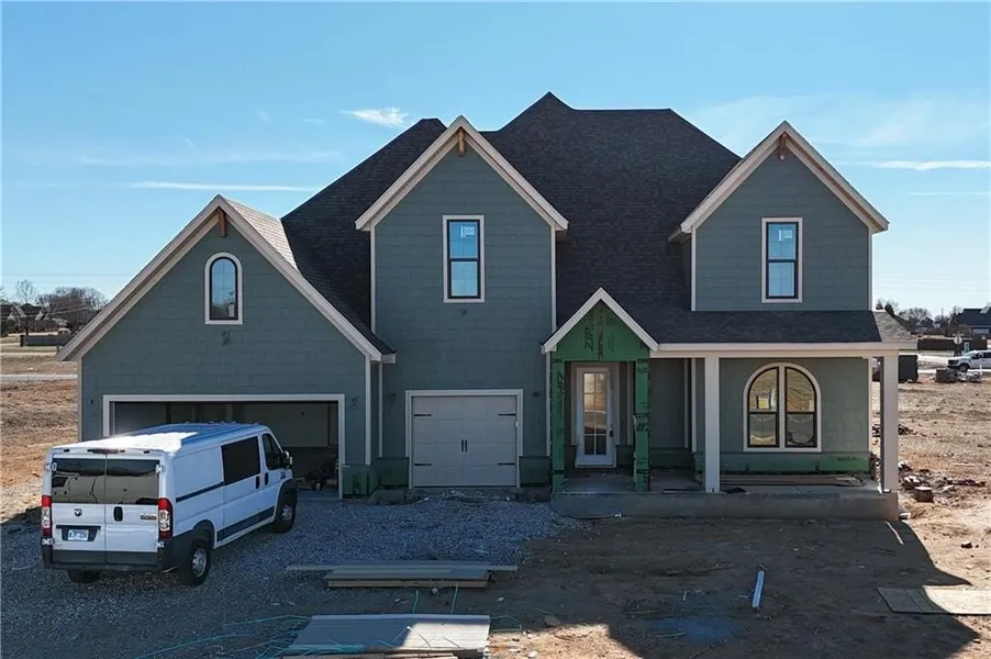 Welcome to County Line Square, a new Springdale community near Shaw Family Park with a pool and pavilion for residents. The entry opens to a bedroom and full bathroom on the right, then continues through an arched opening into the main living area. A fireplace anchors the space, while 4 large windows overlook the covered back patio and engineered hardwood floors extend throughout the first floor. The kitchen features include a large island, 3CM granite countertops, cabinets to the ceiling, GE Profile stainless steel appliances, and a pantry. The primary suite is also on the main level and includes a vaulted ceiling, a bathroom with a double vanity and centered makeup vanity, a walk-in shower, and a walk-in closet. Also on the first floor are a laundry room and mudroom with access to the 3-car garage. Upstairs offers 3 bedrooms and a full bathroom. A fence, gutters, and blinds are included. Builder’s preferred lender is offering $3500 toward closing costs or a rate buy down. *Agent Owned*
