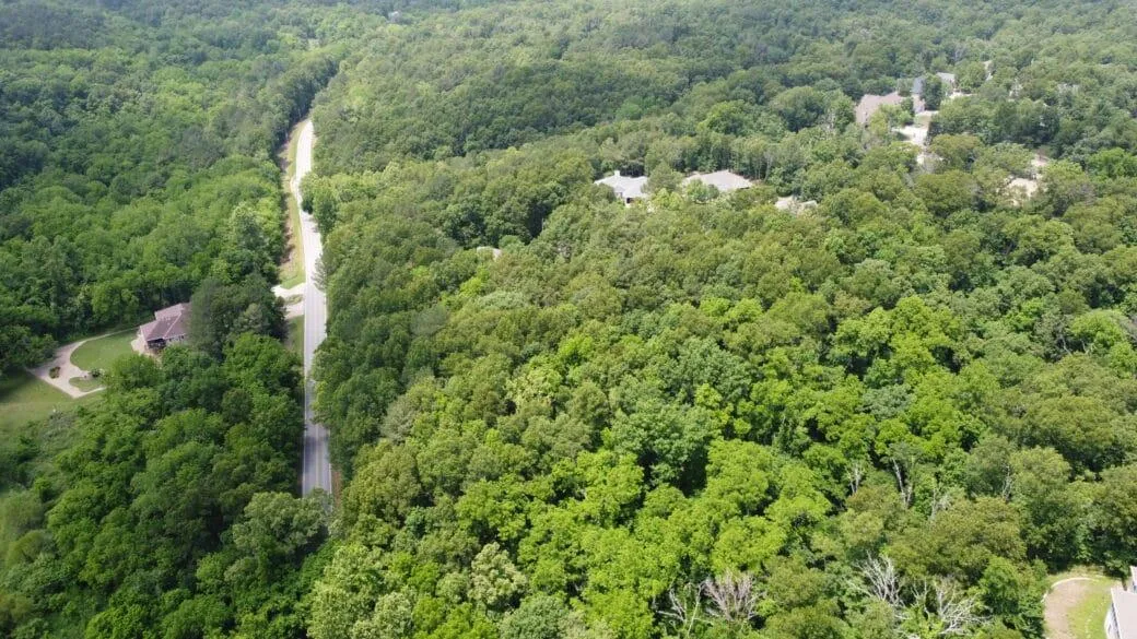 Coordinates: NW corner: 36.4956, -94.3083 NE corner: 36.4959, -94.3071 SW corner: 36.4954, -94.3081 (Road) SE corner: 36.4951, -94.3074 (Road)