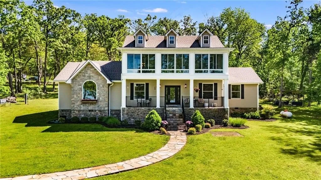 Tucked along the sparkling shores of Beaver Lake, this stately colonial-style retreat sits on 4.09 serene acres just 30 minutes from Downtown Rogers. With 271 feet of core frontage, a private walking path leads to the beach where lake views stretch endlessly and a boat slip with lift and swim deck awaits. The spacious 3,287 sq ft home invites connection and comfort with 4 bedrooms, 2 full and 2 half baths, a bonus room, and a sunroom designed to soak in every season. Recent updates include new roofs, luxury vinyl flooring, fresh paint, a whole house surge protector, and a new dishwasher—so you can relax from day one. Beyond the home, a 30x60 heated workshop with its own septic, bath, W/D, kitchenette, and storm shelter offers endless potential: guest quarters, RV haven, studio, or business base. Plus, an underground pet fence and level lot mean ease for everyday living. Whether you're ch...