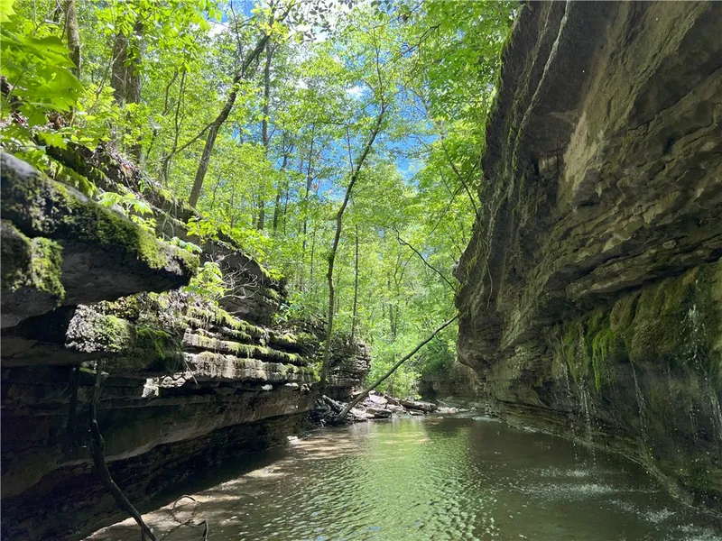 103 Acres in the Ozark mountains. Perfect opportunity for work and play. With 1.3 cleared buildable acreage on hwy 62 and over 800 ft of frontage traffic exposure, its location is ideal to establish your business venture and still have over 100 acres of wooded privacy for recreation, homesites or hunting. Notice the view from hwy 62! If an expansive view is what you desire, the topographical elevation is ideal. The possibilities are endless. There are roadways to provide access to the entire property. Canyon bluffs line the east edge and Devils Eyebrow National area and wildlife from Fish and Game Reserve access the southeast corner. The east canyon creek feeds into Spider Creek. This creek is feed from natural springs and rain runoff flow varies with season. The bluffs cascade overhead, with moss, ferns and water trickling down to the creek. Sunlight filtering through the trees, this truly is a majestic hollowed retreat. Only 20-25 minutes to Rogers, Bentonville, Holiday Island, shopping and luxurious amenities.