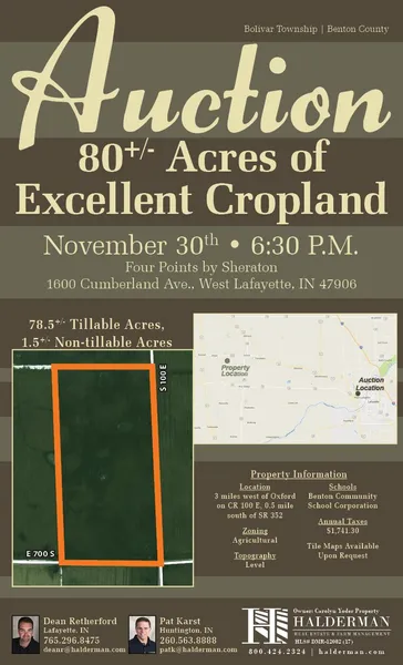 Research Parcel InformationGeneral Location: 3 mile west of Oxford, IN on CR 100 E, 1/2 mile South of SR 352