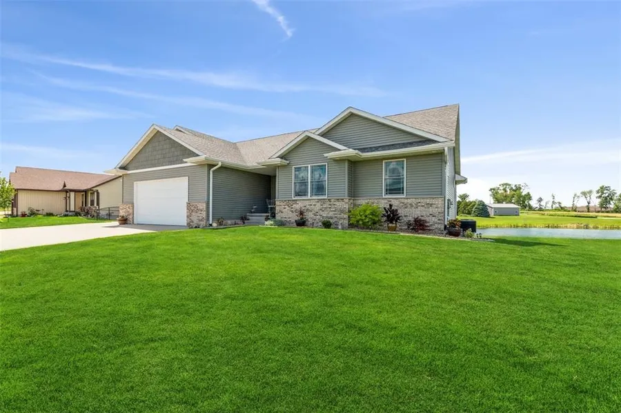 Very well built home with many extras! Great open floor plan with character throughout! This kitchen includes granite counter tops, upper and lower cabinet lighting, nice food pantry, breakfast bar, plus tons of cabinets and counter space! Perfect main floor laundry that includes a sink, nice hidden half bath with a pocket door when you enter from the garage! Oh lets talk about this garage!!! Very well thought out design- 1080 sq ft (can fit four cars), heated, trench drains, wired for 220, nice closet and loft area for storage! This home has gorgeous trim work- flooring and solid 3 panel doors throughout. You will love the screened in porch from the master suite! The bathroom includes a custom tiled shower!Enjoy fishing in the stocked pond and taking in all the amazing sunsets from your back yard!Nice fenced in area for your pets!Too many features to list! Must see in person-Very well t...