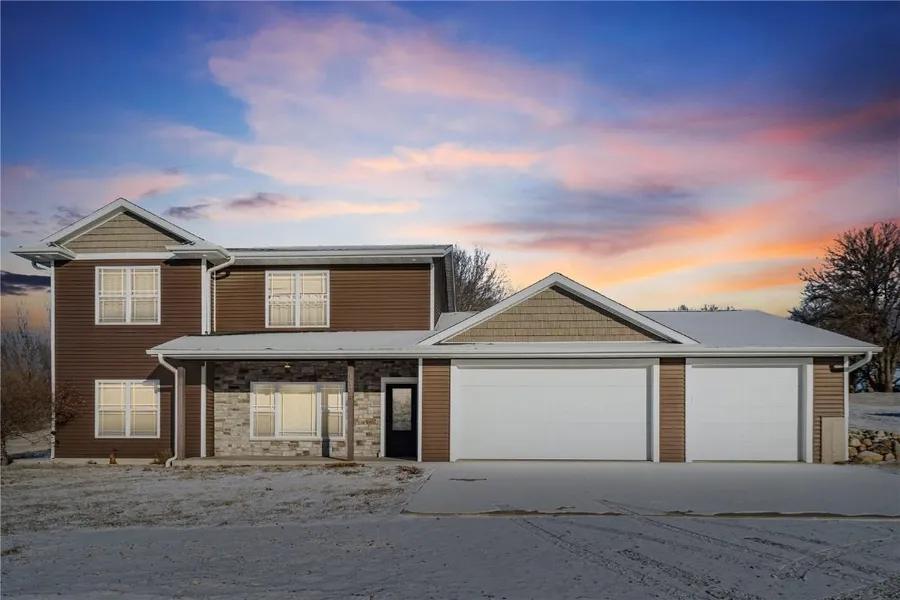 This rare find offers a distinctive layout and stunning features on a spacious 1.25-acre lot, with an additional .76-acre lot included in the sale. Nestled in a serene setting, this home showcases gorgeous sunset views and modern comforts. The main floor is thoughtfully designed with a luxurious master bedroom suite, sitting and dining areas, a beautiful kitchen, and a convenient laundry space. Upstairs, you'll find a large family room, perfect for a teen hangout, playroom, theater area, or whatever you need. There is a walkout slider opening to picturesque views, along with two oversized bedrooms with walk in closets and a full bath. The property also features huge garage with enough space for 4 cars. There are heated floors throughout the entire main level and the garage itself, ensuring comfort year-round. Plus a whole home generator for added peace of mind and an invisible fence for your pets. This home is a perfect blend of space, style, and functionality, offering endless possibilities for outdoor enjoyment and future development. Schedule your private tour today and experience this extraordinary property for yourself!