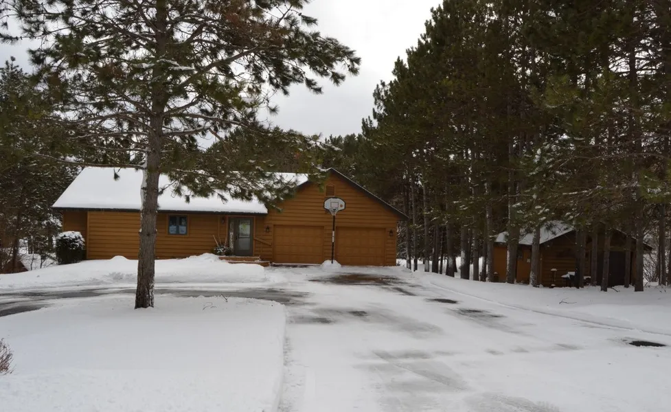Treed lot, finished detached workshop, large main level family room with fireplace, new flooring throughout, lower level walks out to a screen porch and large back yard. Close to Hwy 10. Detached heated shop. Log cabin playhouse with heat and electric.