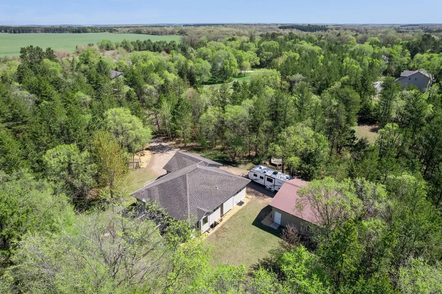 Exceptionally cared for, 2002-built one level home on 2.3 wooded acres. Beautiful cul-de-sac location less than one mile from town. Bright open kitchen with vaulted ceilings and walk in pantry closet. Living room has vaulted ceilings, fireplace and beautiful views. Primary bedroom has walk in closet and private bath with jetted tub. Two additional bedrooms, full bath and laundry room on main floor. Accommodate large gatherings in the huge lower-level family room. The finished lower level includes 2 more bedrooms, a bath, and a large storage room. Great wooded views from the deck and yard. There is also a relaxing covered front porch. The 30x40 pole shed has concrete floor and 10-foot interior clearance. The access ramp to the front door can remain or seller will remove if buyer prefers. A large 5BR, 3 BA home with pole building on wooded acreage close to town-don't miss out on this one!