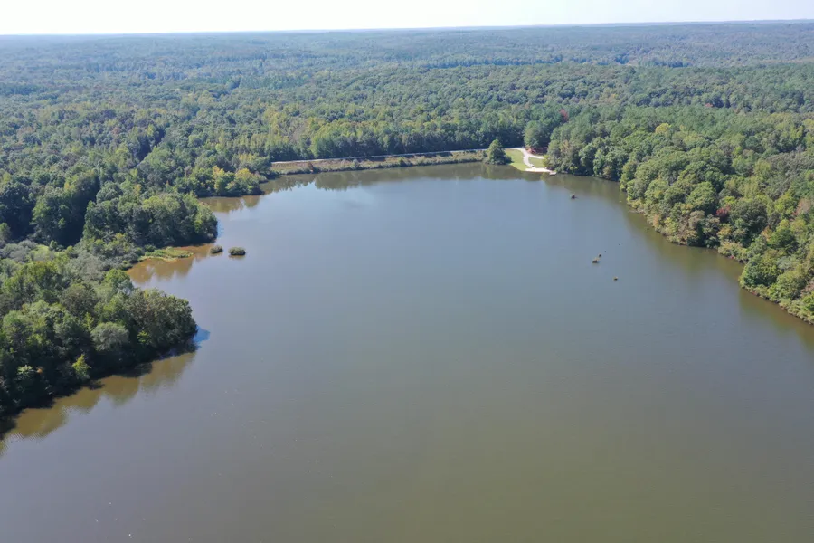 325.422+- acres which includes a beautiful 100 acre fully stocked lake surrounded by woods and rolling hills. On the property you will find a 2,400 sf modern log cabin featuring 3 bedrooms, 3.5 baths and also a 1,000 sf 1 bedroom, 1 bath guest log cabin. Both of these structures feature vaulted ceilings, wood burning fireplaces, spacious bedrooms, wrap around porches and covered back patios. Behind the 2 cabins there is an 90x60 (5,400 sf) metal shop with electricity, 2 roll up doors and concrete floors to store all of your boats, equipment and toys, two car detached garage and storage building for the property. The 326 acres of land is beautiful rolling hills with mixed hardwood and pine timber. Several large open fields currently used as a sunflower field for dove hunts and food plots for deer and turkey hunting. This is truly an amazing recreational and hunting tract with a huge white...