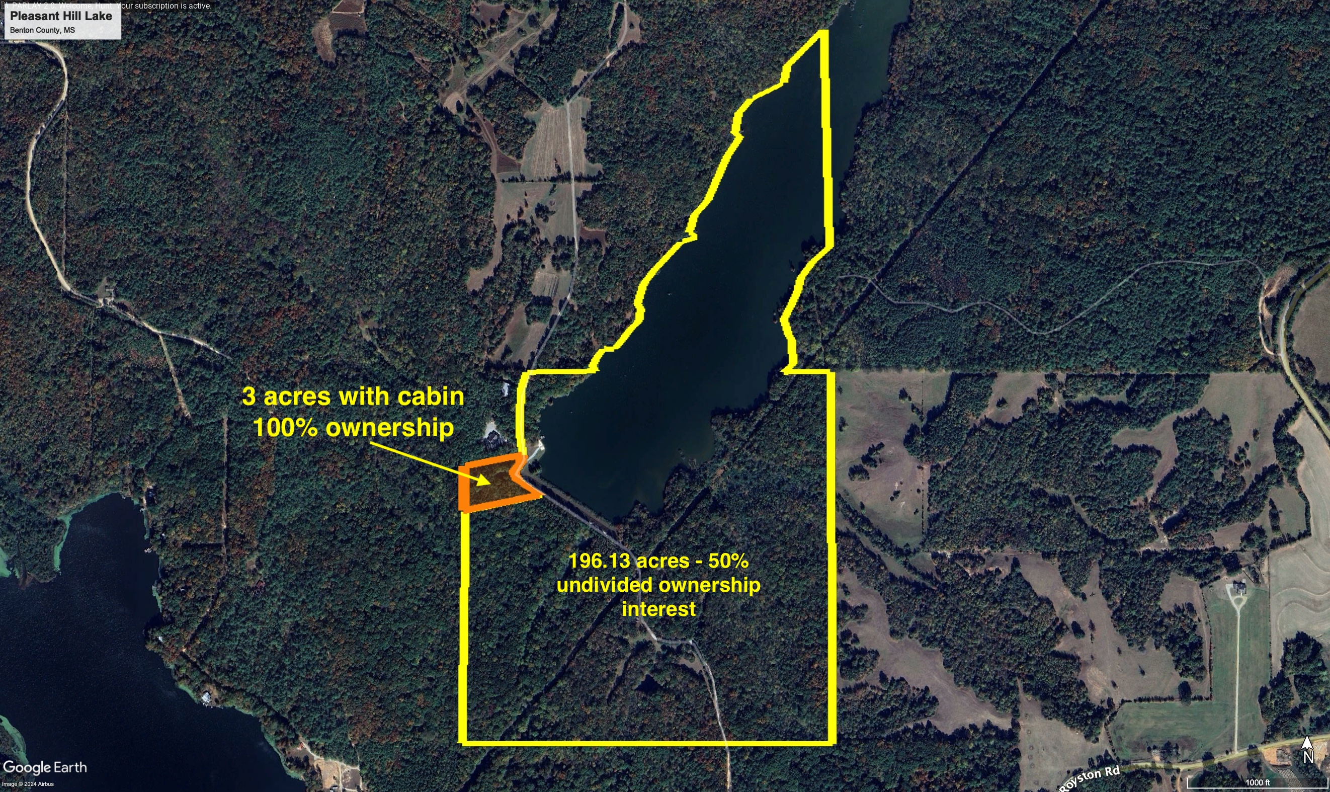-50% ownership interest in 197 +/-acres (74 +/- ac. in lakebed & 123 +/- ac. in timberland & pastures)
