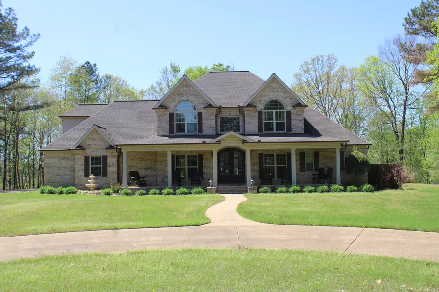 3,000+/- sf 4 bedroom, 3.5 bath home with bonus room situated on 130 acre private setting behind a gated entrance at the end of a 1,300 ft long driveway. Inside the home you will find 1 bedroom and 1.5 bathrooms downstairs with large great room featuring 19' ceilings, formal dining room, custom kitchen w/granite countertops, and all appliances included. Spacious primary bedroom with French doors leading you out to the covered back patio overlooking the gunnite swimming pool. Primary bathroom with his and her walk in closets, walk in shower and jetted tub. Upstairs consists of 3 bedrooms, 2 bathrooms and a bonus room. On the exterior you will find a large covered front porch and covered back patio with beautiful views of the property. The 130+/- acres is made up of mostly wooded acreage that consists of mixed hardwood timber and scattered pines overlooking the Tippah River bottoms. Behind...