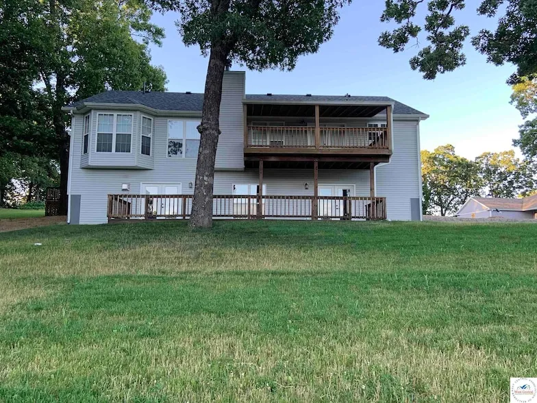 Stunning 4 bedroom, 3 bath home nestled on 2.08 acres of wooded beauty, complete with a private lake in your backyard. Swim and fish in this crystal-clear lake with dock and swim ladder. Enjoy 2,650 square feet of living space, new stainless-steel appliances, finished walkout basement- ideal for relaxation or entertaining. Includes pool table, shuffleboard, very nice custom bar with sink and cabinetry, 10-foot ceilings and tornado shelter with light. The property features two separate lots offering flexibility and privacy, included is a 1,200 square-foot insulated outbuilding with a concrete floor and a cozy wood stove. Beautifully landscaped yard includes sod, newly planted trees, garden spots, raised garden beds and an asphalt driveway. Seller is willing to leave furniture.