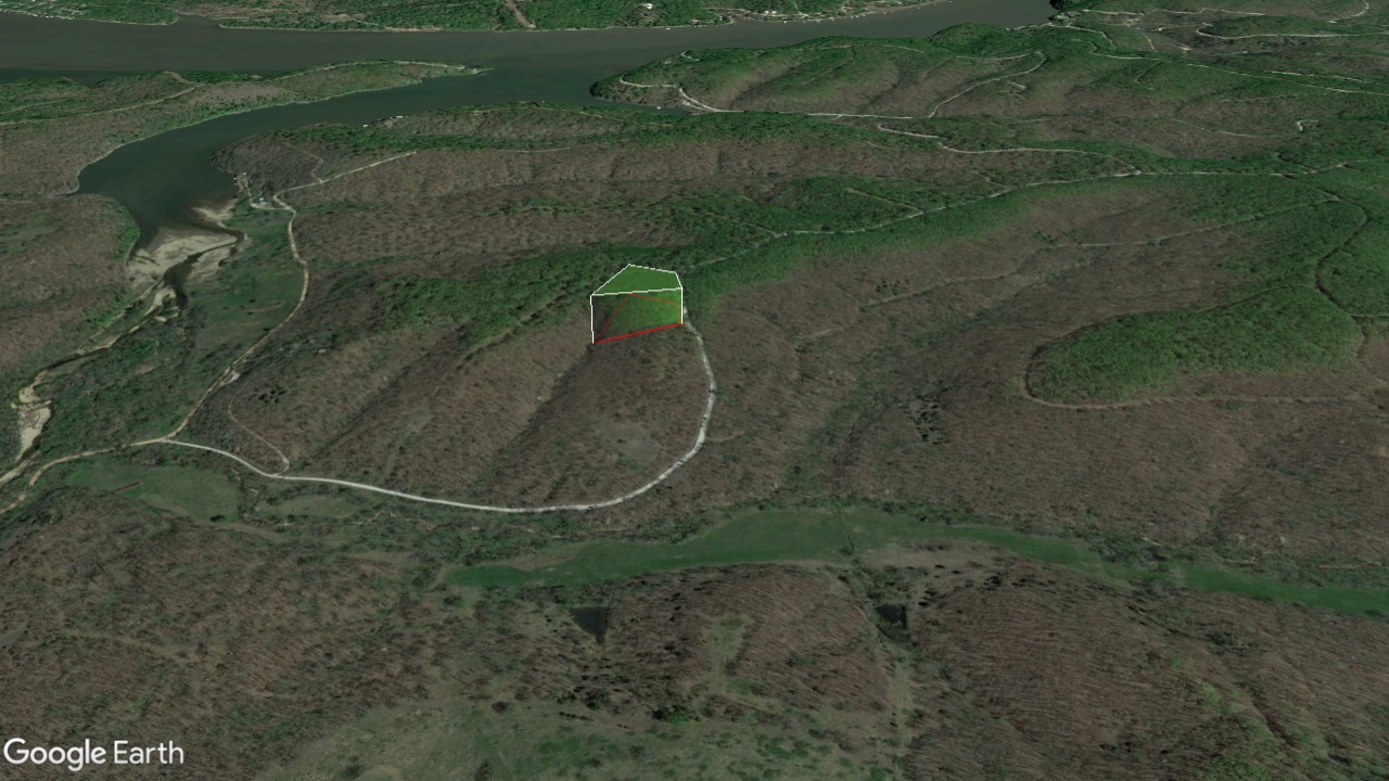 Coordinates: NW corner: 38.2135, -93.1015 NE corner: 38.2132, -93.1007 (Road) SW corner: 38.2125, -93.1019 SE corner: 38.2127, -93.1006 (Road)
