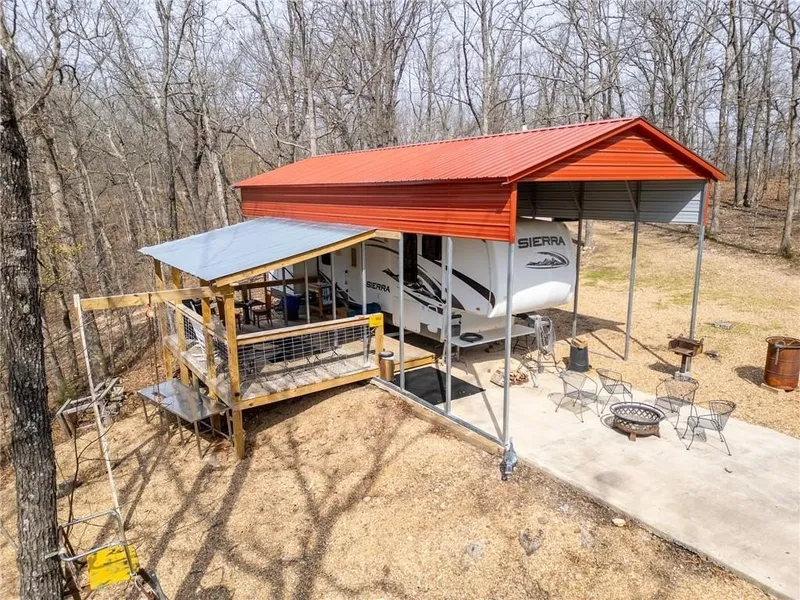 55 +/- acre turn-key recreational hunting paradise in the heart of the Missouri Ozark mountains! If you've been searching for that one piece of land you can buy and just show up and hunt, this is it! Power, water, and holding tank already on site. A large, 2 bed RV sitting on a concrete pad and covered with new carport is staying with the property. Massive covered patio/deck area. Storage shed and fiber internet on-site to help you stay connected if need be! Property is comprised of beautiful, rolling hills with comprehensive trail system throughout. All blinds and tree stands stay with the property, which include two custom built enclosed blinds and 6+ tree stands. Enclosed blinds overlook two established food plot areas. Strong trail camera history of both deer and turkeys. A group of five turkeys including 2 jakes and 2 toms was sighted while photographing the property. Bottom line is this. If you've been looking for private and "off the beaten path", it doesn't get any better than this piece. Get away from it all on your own quality hunting land. The sloping hills and meandering, well-maintained trails would be great for other uses like long hikes or four-wheeling type activities as well. Property has been logged in last five years and seller reports logging company believes there's enough value for another cut if new buyer wishes to quickly recoup some of their initial investment. Call today and get it bought in time for this year's turkey season!
