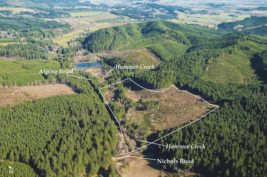 This 40 acre timber tract is located in the foothills of the Oregon Coastal Range, 8 miles west of both the Willamette Valley community of Monroe, and Highway 99W, with frontage along Alpine Road. Both Eugene and Corvallis are within a 35-minute drive. The small community of Glenbrook is two miles east of the property.