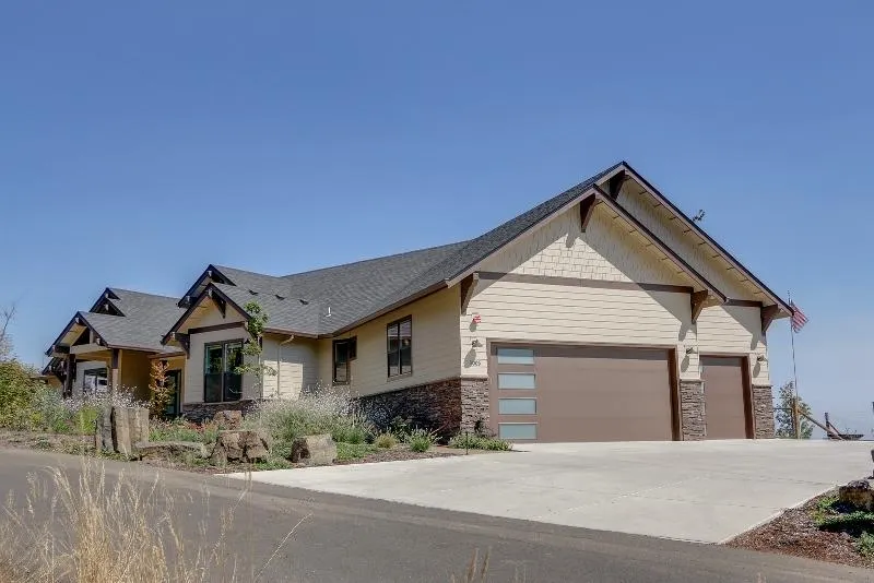 3 bedrooms plus a dedicated office. The master bedroom and living areas have a focus of the incredible eastern views of the Willamette Valley, the Coburg Hills, and the Cascade Mountain Range. A great room floor plan with propane fireplace in the living room and soaring ceilings with tongue and groove hemlock application. The master bath has double sinks, a large walk in, tile shower, and spacious walk in closet. The guest bath also has an oversized walk in, tile shower, and the guest suite has a private bath with tub/shower combo. The oversized 3-car garage features 220 power, and a dedicated freezer plug. Sellers had leaf filters installed for the gutters and they have a lifetime transferrable guarantee.