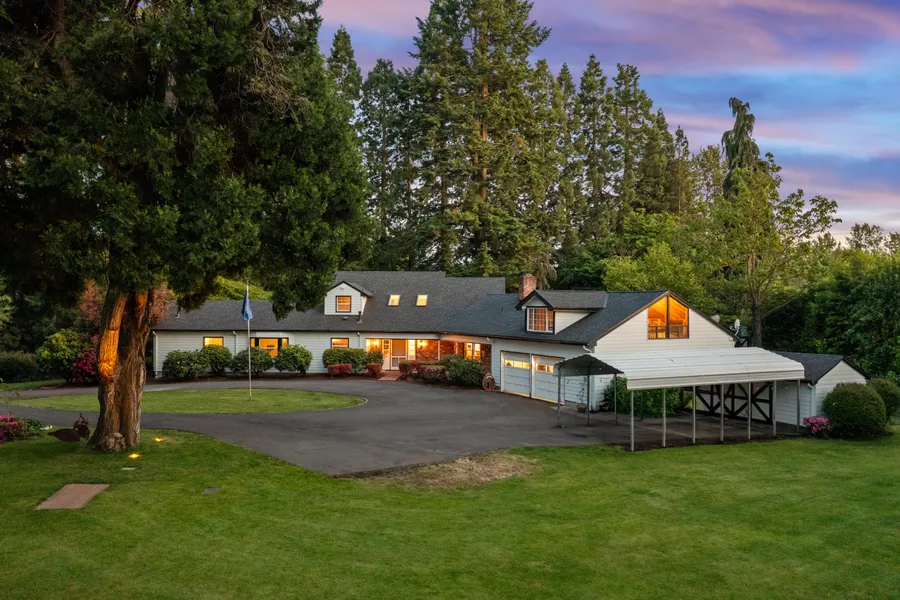Nestled on a private gated driveway, this well built 3,730 sqft home on 3.34 acres blends luxury with serene rural living. Featuring three spacious bedrooms and four bathrooms, it boasts an expansive kitchen, cozy loft, and large windows that flood the space with light. The primary suite is a true sanctuary with a spa-like bathroom. Enjoy sunny afternoons in the in-ground pool, surrounded by lush gardens and redwood trees. An impressive 3 Bay, 2,400 sqft shop complete with a utility sink and bathroom.