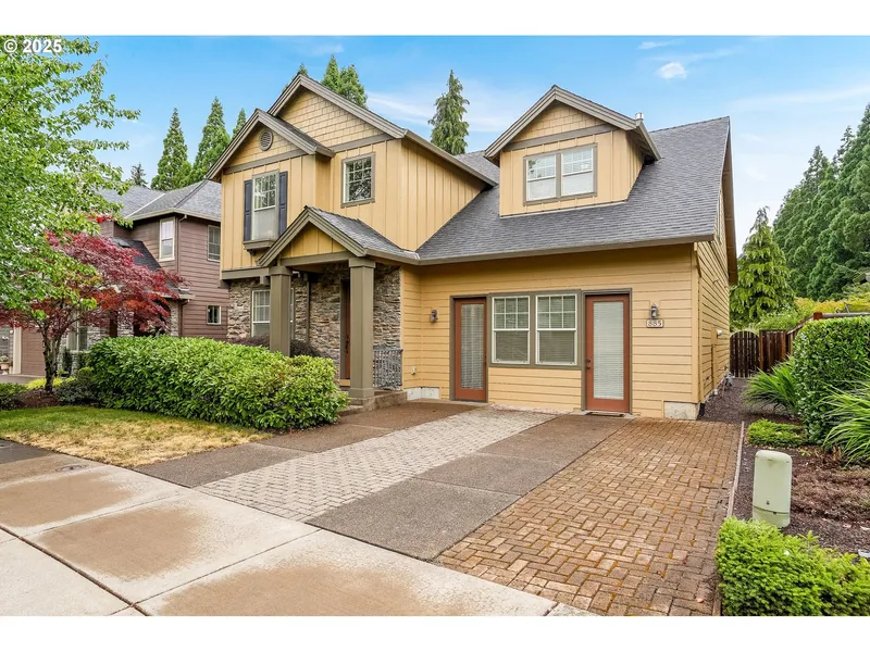 Welcome to your future home - a former model show home by Legend Homes that exudes quality and style. This beautifully maintained two-story residence feels like new and showcases the premium upgrades you'd expect from a showcase property. Step inside to appreciate the elegant designer paint palette, granite countertops, French doors, crown and window moldings, soaring ceilings, and custom window treatments - all included with the home. The main level features a bright and spacious Great Room, complemented by an open-concept kitchen with an inviting eating bar island, perfect for entertaining or casual family meals. Upstairs, the vaulted ceilings in the primary suite create a luxurious retreat. The fully finished garage offers carpeted storage space and built-in counters, presenting a versatile opportunity for a private office, ADU conversion, multi-generational living, home school setup, fitness studio, or yoga space. Enjoy the tranquility and privacy of backing onto city-maintained green space, with easy access to both Albany and Corvallis. A large fourth bedroom or potential office is located on the main floor (note: no closet). Square footage listed in county records may include the finished garage space. The two-bay garage has been converted into a showroom but can easily be restored. Staging furniture is available and negotiable with the right offer.