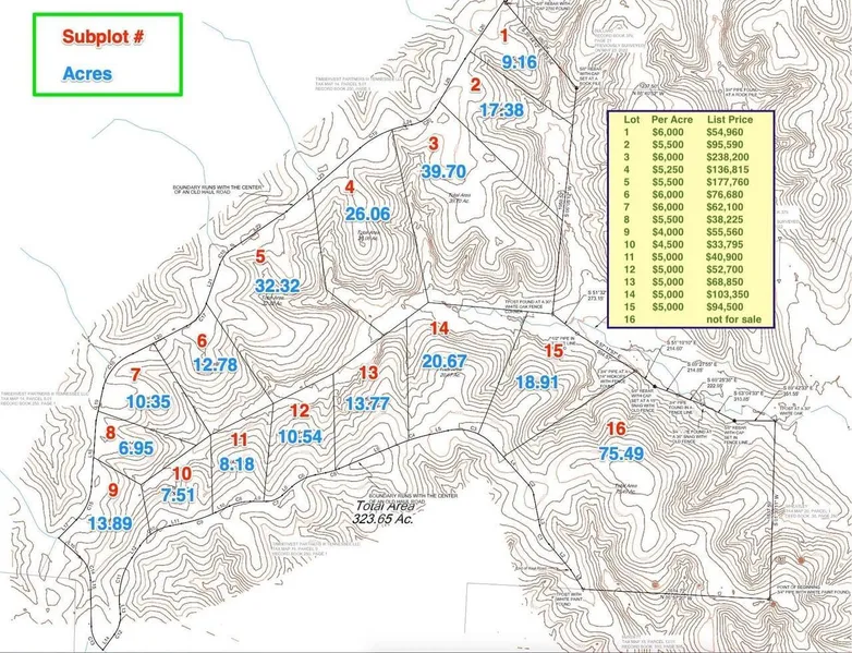 The entrance to the property is a shared easement with other landowners behind the gate at the road. A truck or 4WD is recommended but not a necessity. There is some water - a creek in the bottom between tracts 3,14, and 15. Seller financing possible - with a land contract that requires 25% down, 8% APR, max 60 months - credit score must be 640 or better and a satisfactory credit check.