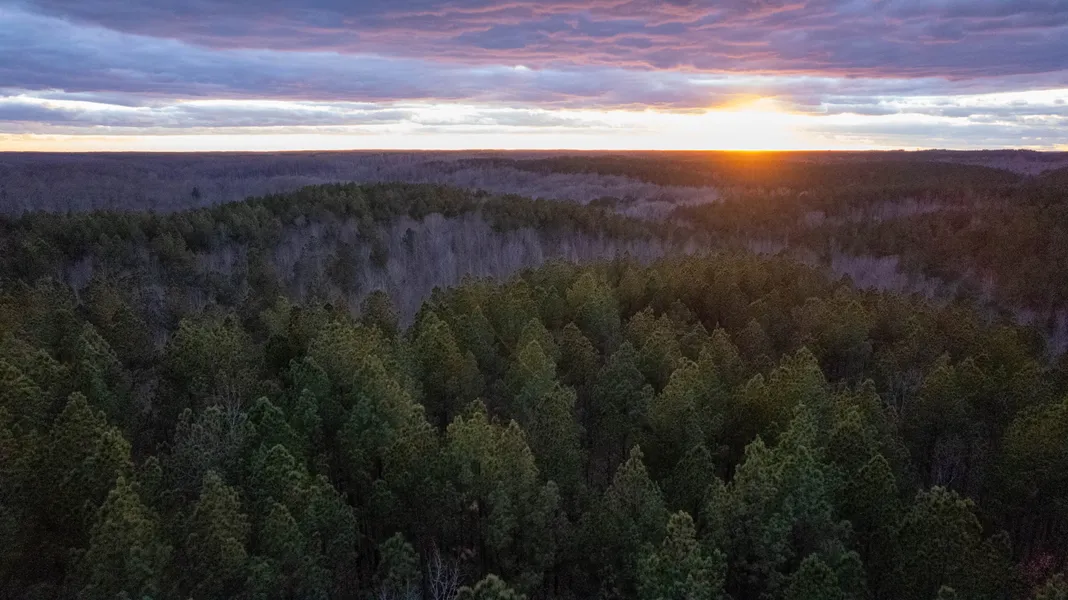 The property is rolling hills with a mixture of hardwoods and pines.