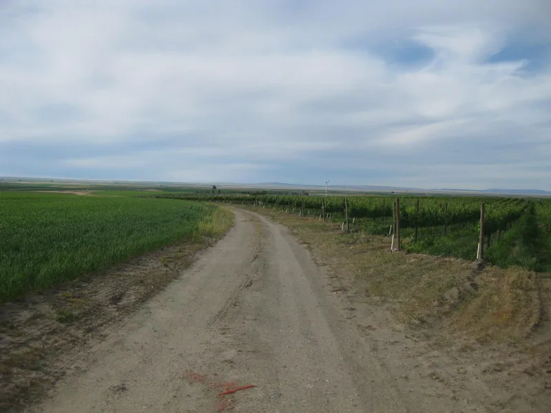 The property contains a total of 123.52 acres of which 15.0 acres are wine grape vineyard, 62.0 acres pivot irrigated land with vineyard development potential, 12.0 acres are solid set irrigated row crop land, and 34.52 acres are roads and waste. County road access is provided from a gravel deeded access road.