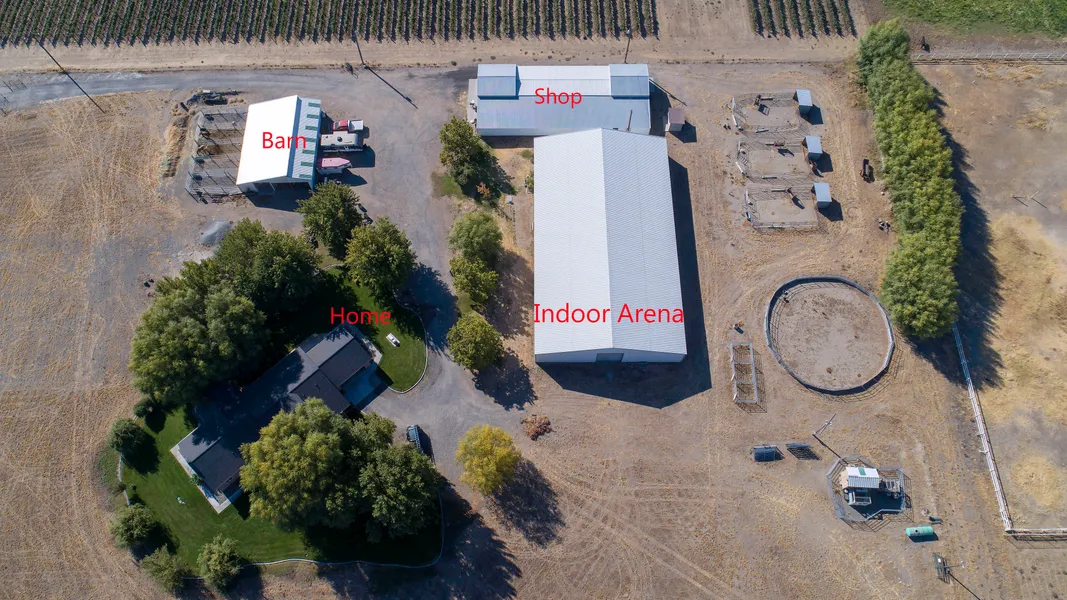 Spectacular country setting on 6.29 acres! This wonderful property has endless possibilities for your outdoor space, offering a 46x108 Shop/Storage area that could fit countless needsoffice, wood working, storage, etc - 8 bays that could be used for box stalls, or dog kennels - includes a 220 volt at shop area and 10 garage door. This gorgeous private property also features an 80x140 Indoor Arena with one 8 door, one 10 door, and one 16x18 door, water, lights, and electrical ~ and a 45x60 Barn featuring 5 stalls with outdoor paddocks, insulated tack room, hay storage, unfinished loft storage area, concrete aisle way, water, lights and electrical! This little piece of country also includes a single level home that features a welcoming covered front porch, and an interior that greets you with an open floor plan, vaulted ceilings, Alder trim & doors, spacious kitchen with center island, granite counter-tops, pullouts, solid oak cabinetry, and soft close drawers, and 3 bedrooms with Maple hardwood floors, including a lovely master suite with soaking tub, separate shower and dual sink vanity. Make this country retreat your own and enjoy garden areas, mature trees, mountain and orchard views, and plenty of room to roam!