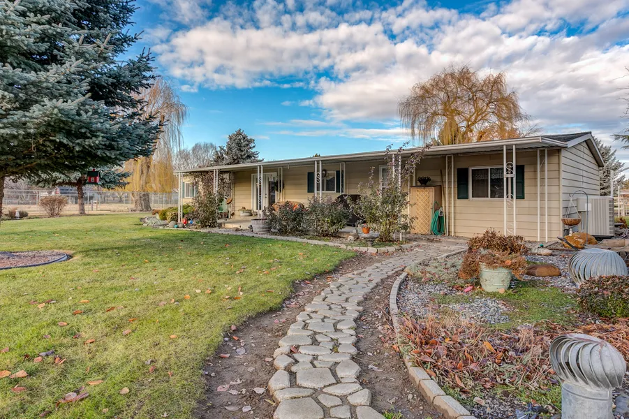 Horses! Chickens! And Goats! OH MY!!! Bring your family and animals out to the Country and live the country life-style in your relaxed and quiet enclave! The tree-lined private drive leads you to your serene paradise of trees and pastures and to your beautifully well-maintained home. Park your cars in the detached 2-car garage/shop or the carport and park your big rigs, horse trailers, and RVs in the vast parking around your circular driveway. Upgrades and updates where it counts for your home (did I mention split floorplan, huge family room and master bedroom, and lots of natural light?!): All windows replaced with double-paned vinyl windows, new HVAC installed in 2016, new laminate and tile flooring in the family room, dining room, kitchen, and master bath, which has also been completely remodeled with a luxurious fully-tiled shower and double vanities. And the outdoors WOW!!!! Fully-fenced property including ALL the horse amenities anyone would desire round pen, fenced horse pasture, arena, and loafing shed. Theres even a huge dog run for your furry friends. And the storage abounds! New huge storage shed as well as a pole barn awaits all of your items that need homes. The lawn and property is watered from irrigation water and there is a private well for your potable water. Paradise awaits.