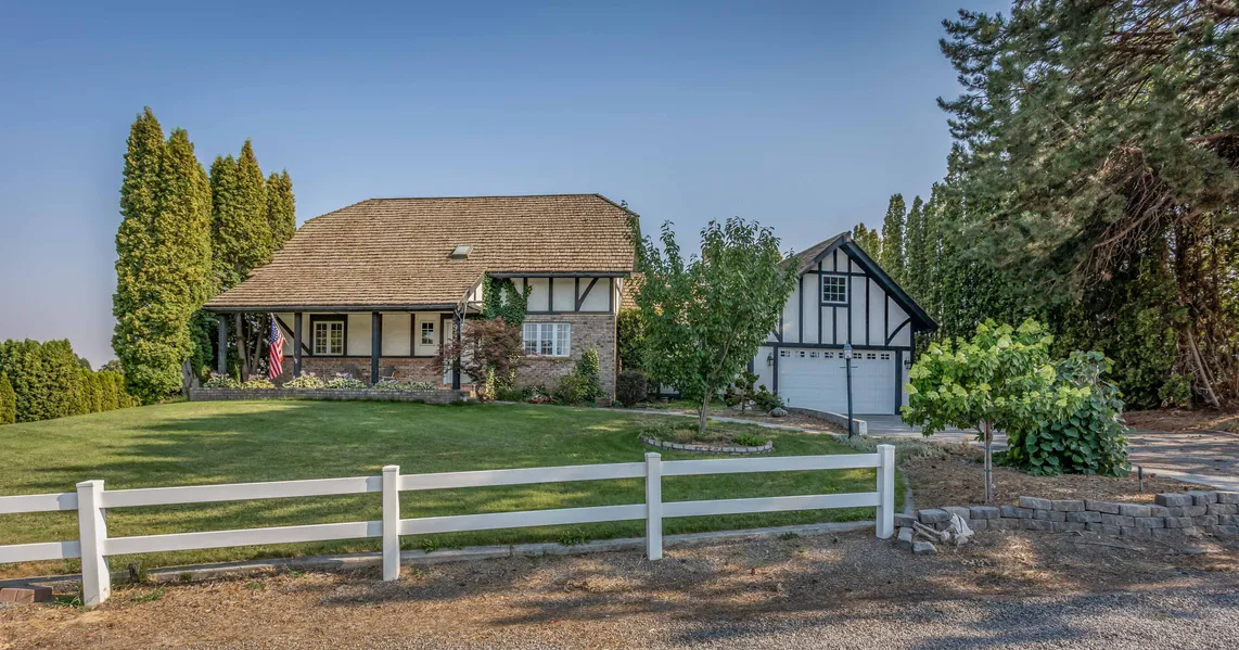 Purchase your very own slice of Tri-Cities equestrian paradise with this 1.96 acre property! Rare opportunity offering a classic Tudor Style home, horse set-up with barn and pasture with access to miles of horse trails in the Rancho Reata community. This beautifully maintained 2 story w/walk-out basement offers just under 4,000 sq ft of living space, 4 bedrooms, 3.5 bathrooms, and wonderful living and entertaining spaces throughout. As you enter, you will be greeted with a beautiful staircase, hardwood floors, formal living area with fireplace, and den/formal dining area. The spacious kitchen includes wood cabinetry, stainless steel appliances, tile floors & counters, and an inviting dining area that features a gas stove with lovely brick surround, coffered ceiling, wainscotting, and access to the outdoor living space. You will also find a laundry room with great storage, a generous sized master with access to the balcony, his & hers closets, and private bath, and on the lower level you will enjoy a wonderful family/rec room with river rock fireplace and access to the backyard. This property is an entertainers dream, with amazing deck and patio space to gather for year round fun. You will also enjoy a firepit, above ground pool, mature landscaping, fruit trees, chicken coop, full fencing, 2 car garage, open RV parking, expansive views and tranquil scenery. Ideally located in a private and picturesque neighborhood yet close to great amenities and easy highway access.