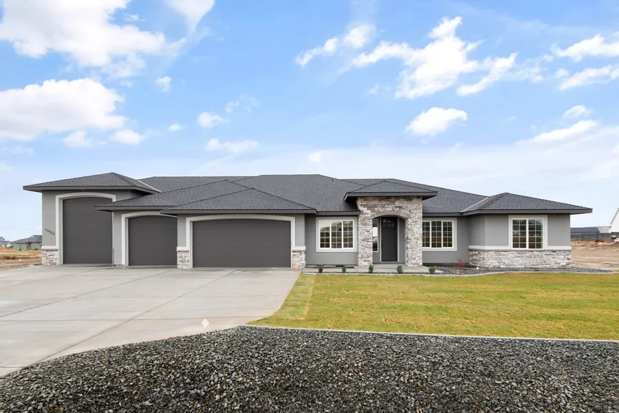 The Sonora, brought to you exclusively by Riverwood Homes, is a spacious single-level home with 5 bedrooms (w/ Jr. Suite) , and 3.5bathrooms. This Multi Gen House also features a 15x42 RV bay with 13 garage door. The 5-car garage (which has 320 amp service)provides plenty of parking and storage space! Located on a massive 1 acre lot, which will allow for a future shop or pool. Other features include; soft close drawers, walk-in pantry, Stainless steel cook top and wall oven, Granite/ quartz counter tops in kitchen and bathrooms, Tile flooring in laundry room (with laundry sink) and bathrooms, Tile walls in master shower , Ceiling fans in master bedroom and family room; pre-wired on patio, Full wood wrapped windows inside the house, Hand-textured walls (Santa Fe style) with square corners, Coffered ceiling in master bedroom, propane fireplace with stone or tile surround/hearth and mantle, loads of extra storage areas and closets, 80 gallon energy efficient hot water heater, East facing Covered patio, Front yard landscaping including sprinkler system, sod, shrubs, one tree, concrete curbing, and decorative rock . Other things to note; this home is a Energy Star Certified House and a 1%lender credit is offered through Peak Mortgage