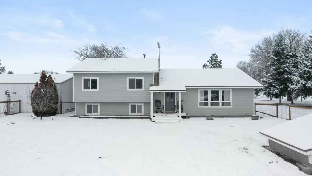 Circling through the 2 acre property driveway, welcomes you to 216008 E Farm Rd. This farmhouse features 3 bedrooms,2 1/2 baths, with a large flex room that you can use as another bedroom, game room, theater room, large office, it is a great room for just about any need. Sellers favorite place in home is the living room, its been the place where everyone gathers spending quality time and enjoy the views out the big window. Just about every room upstairs has a beautiful view as well of the surrounding country hills. Several updates have been made inside and out: windows, concrete siding, exterior paint, lighting through out, flooring/carpet/laminate wood, central vac system, quartz countertops, hot water tank, interior paint, well/pump/tank, so much love and care for this home. 2 acres, with fully fenced front yard, partially fenced back, fenced in chicken coop, underground sprinklers through out. Main shop over 2800 sq ft with heating and cooling, pull through garage bay doors, half bath, plumbed in air compressor through out, also central vac in shop, 2-20outlet, electric hoist. Second shop is 800 sq ft. This property really is a prize, room for all your animals, toys, business, the possibilities are endless, schedule a showing today with your favorite realtor.