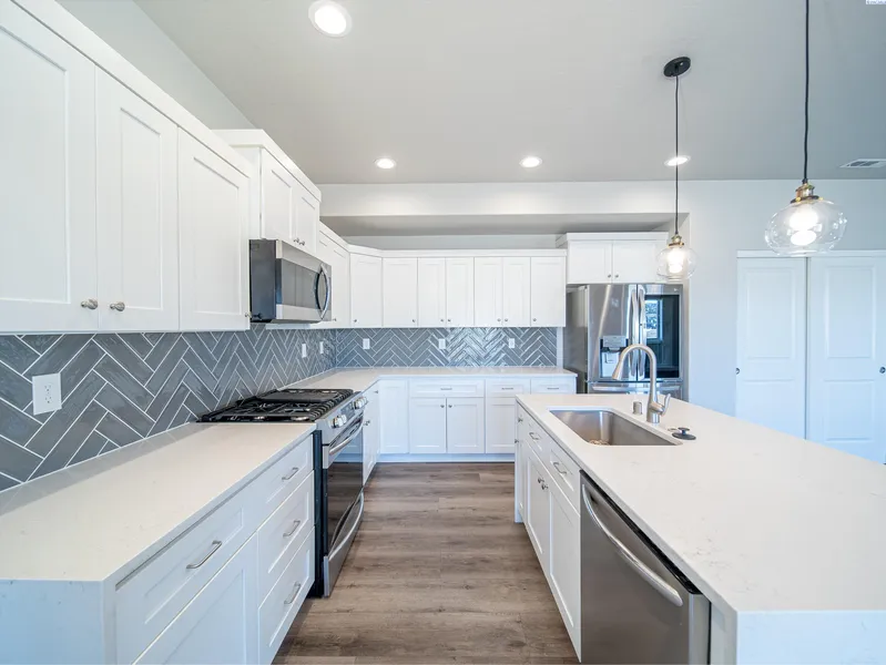 MLS# 266892 Welcome to Southridge Estates. Less than 1-year old, this home is loaded with upgrades. Located at the end of a quiet cul-de-sac, you will enjoy the sunset from your backyard with gorgeous southwestern views. Walk in to the entry foyer and see how it opens to spacious great room with raised ceiling. The accent wall with a fun architectural feature lends it's unique visuals to the living area. The Great Room is spacious and opens to the kitchen and dining space. Kitchen includes stainless steel appliances, quality cabinets with soft close doors and drawers, pantry, island with quartz countertops, and beautiful tile backsplash. Covered patio is great for entertaining and easy access to the yard with full yard UGS and landscaping. Master bedroom is large with access to en-suite that features walk-in shower, vanity, and spacious walk-in closet. Make plans to see this home today and make it your own!