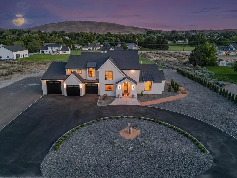Welcome to your dream home! This stunning property offers over 4600 square feet of luxurious living space, perfectly nestled on a picturesque one-acre lot. With its impressive features and exceptional design, this home is an absolute showstopper. As you step inside, you'll be greeted by a grand 20-foot high entry and living room ceilings and curved staircase, creating an immediate sense of awe and grandeur. The open floor plan seamlessly connects the various living areas, providing a perfect balance between elegance and functionality. This four-bedroom, four and a half bathroom home is designed with your utmost comfort in mind. Featuring his and hers home office, providing the perfect workspace for both you and your partner. With separate entrances and stylish design, these offices offer privacy and productivity. For outdoor enthusiasts, this property is a paradise. Picture yourself perfecting your golf swing on your own putting green, or taking a refreshing dip in the sparkling swimming pool, complete with a stunning waterfall feature. The expansive yard provides endless possibilities for outdoor activities and entertainment. Fitness enthusiasts will appreciate the convenience of the home gym or golf simulator room, allowing you to stay active without leaving the comfort of your home. And for those with a passion for cars, the checkered epoxy garage floor adds a touch of sophistication to the ample storage space. The heart of this home is the spacious kitchen, featuring Z-line appliances, perfect for culinary enthusiasts and aspiring chefs. The 9-foot arched window and vaulted ceiling flood the kitchen with natural light, creating a warm and inviting atmosphere. The primary suite is a sanctuary of pure luxury, complete with a fireplace, dual shower heads, and a sunken soaker tub with LED lighting. Imagine relaxing in the warm glow of the fireplace or indulging in a soothing soak in the tub, surrounded by tranquility. With LED accent lighting throughout the home, every corner is beautifully illuminated, creating a cozy and inviting ambiance. The transitional design seamlessly blends timeless elegance with modern touches, ensuring a truly unique and captivating living space. This property also offers room for a future shop, providing endless possibilities for expansion and customization. Don't miss the opportunity to make this extraordinary home yours. Schedule a showing today and prepare to be mesmerized by its remarkable features and undeniable charm.