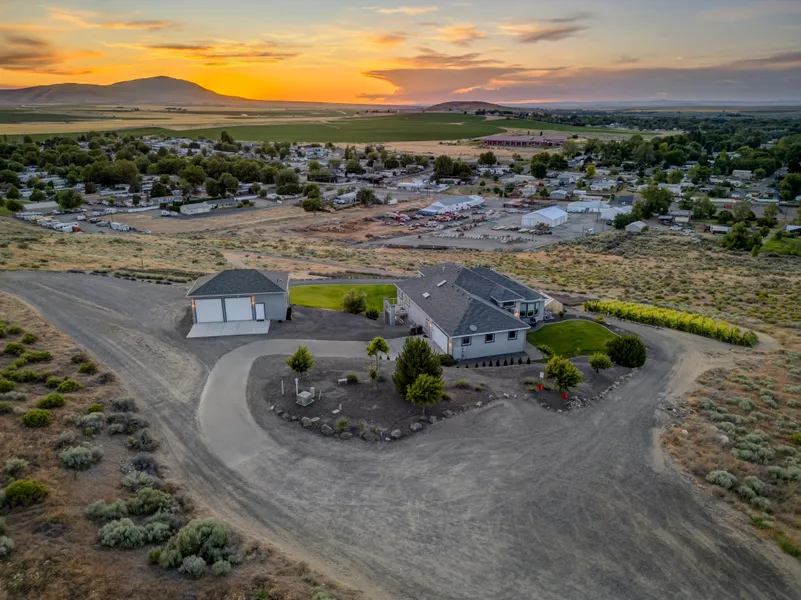 Nestled in the Willamette Heights neighborhood in West Richland, lies this stunning home perched on 2.5 acres surrounded by an established Lavender farm and private vineyard, boasting breathtaking panoramic mountain and city views. Spread across 3450 sq ft in a 1-story with a walk-out basement floor plan, this custom-built home welcomes you with a unique and modern interior, highlighted by a vaulted entry, tile floors, and an elegant living area with a fireplace, and large windows that brilliantly capture the natural light and stunning scenery. The dining room also commands great views and offers the perfect space for both formal gatherings and casual meals with your loved ones. The kitchen offers a contemporary design with sleek white cabinetry, full tiled backsplash, granite countertops, a large island/breakfast bar, wine bar with a beverage fridge, pantry, and stainless steel appliances including a gas range w/hood. There are 4 bedrooms and 3 baths, including a primary suite with fireplace, custom lighting, private spa, spacious tiled shower, dual sink vanity, and an exquisite closet, creating a luxurious and inviting space for the homeowner. The lower level is the ultimate retreat featuring the perfect rec-room ready for the upcoming football season, including a fantastic bar, space for your pool table, access to the lower-level patio, and the 4th bedroom which is currently set-up as a home theater room! The expansive decks and patios that surround the home, offer perfect outdoor living spaces to enjoy the serene Tri-Cities sunsets and Rattlesnake Mountain views. In addition to the attached garage, the property boasts a 24x36 detached shop with a bathroom, full commercial kitchen, large deck, and ample room for your vehicles, toys and projects. The 2.5 acres are comprised of a turn-key Lavender farm, vineyard of 250 Syrah plants, and a circular driveway that surrounds the home and shop. This truly special property is an extremely rare find, offering a unique blend of tranquility, luxury, and enjoyment.