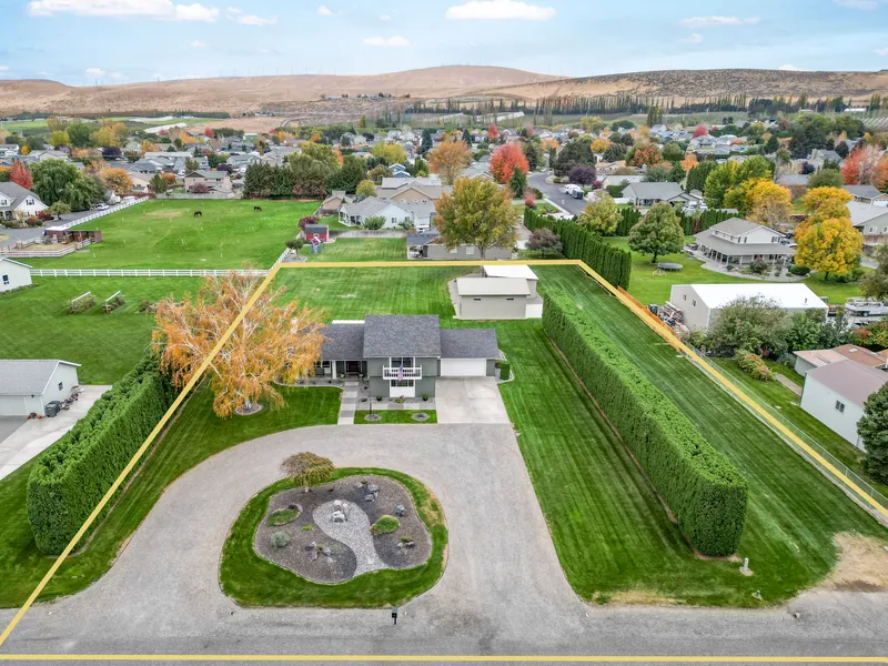Nestled on a serene 1.3-acre parcel in Kennewick, this beautiful home offers stunning views and a 36 x 24 Insulated Shop & Outbuildings! Boasting a charming 2-story layout, this residence features two distinct living areas: a formal sunken living room adorned with expansive vaulted ceilings and abundant natural light, and a cozy family room enhanced by a floor-to-ceiling stone fireplace and vaulted ceilings. The heart of the home lies in the inviting kitchen, complete with ample meal prep space, a pantry, breakfast bar, and a casual dining area overlooking the living room and providing seamless access to the patio. Perfect for hosting special gatherings, the home also includes a formal dining room. 4 generously sized bedrooms, each with ample closet space, and 1.75 bathrooms offer comfortable accommodation. The primary bedroom features a private balcony where you can savor the picturesque views and relish your morning coffee. Outdoor bliss awaits in the sprawling 1.3-acre grounds, complete with captivating views, a large covered patio for entertaining and unwinding, a circular driveway, mature landscaping, lush lawn, irrigation system, a garden area, and an abundance of storage options, including an attached 2-car garage, a spacious detached shop with a workshop, a storage shed for gardening essentials, and an additional outbuilding with three bays - providing ample space for all your vehicles, equipment, RVs, and more. Set in a tranquil corner of Kennewick, this property represents a rare opportunity to embrace the lifestyle you’ve been dreaming of. Contact your favorite realtor today for a private showing!
