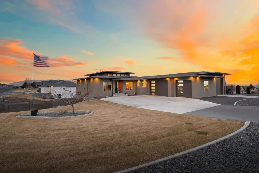 This stunning luxury modern home at 82202 Summit View Drive in Kennewick, WA, is a masterful blend of elegance, modern technology, and thoughtful design, offering breathtaking panoramic northern views. Situated on 0.67 acres with block wall fencing. This 4,100-square-foot rambler with a daylight basement boasts 3,984 finished square feet of impeccably designed living space. The great room features15 ft ceilings with backlit tray ceiling, a fireplace w/side cabinets and an open flow into the gourmet kitchen, complete with custom wood cabinetry, granite countertops, stainless steel high end appliances, a center island, a wine chiller, wine rack, & pot filler. The butler’s pantry is AMAZING with pocket doors, ample storage, a sink, butcher block countertop and a built-in coffee station. The formal dining room adds a refined space for entertaining. The primary suite, located on the main leve...
