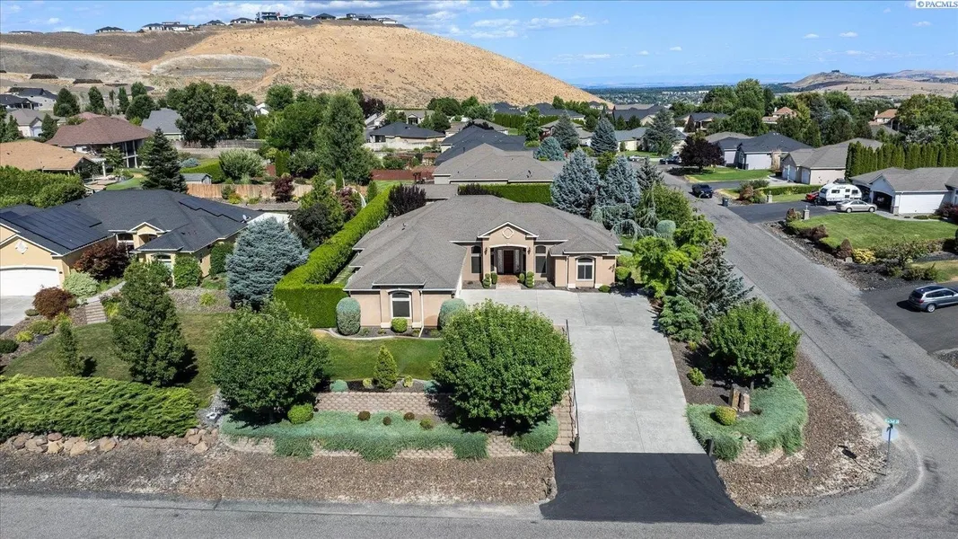 MLS# 285930 Welcome to this stunning stucco rambler situated on a private 0.48-acre oasis in Reata Heights! This beautifully designed home features three bedrooms and a den, two and a half bathrooms, a spacious oversized three-car garage with its own heat AND air conditioning, plus an additional detached shop w/ heat for extra storage or hobbies. Step inside to an inviting open floor plan with a spacious living area, built-in gas fireplace, and large windows that fill the home with natural light and seamlessly flow into the kitchen and outdoor living spaces. The kitchen boasts granite countertops, a breakfast bar for casual dining, tile floors, and a designated dining area perfect for more formal gatherings. A dedicated office with French doors and a ceiling fan offers a comfortable workspace, while the guest powder bath adds extra convenience. The primary suite is a relaxing retreat, complete with a spa-like en-suite bathroom featuring a jetted soaking tub, walk-in shower, dual vanity, an oversized walk-in closet, and heated floors! Secondary bedrooms are generously sized, and the laundry room includes extra counter space and cabinets for added functionality. Step outside to your backyard oasis—an expansive, covered patio with a pergola and ceiling fans, ideal for lounging or entertaining. Enjoy the peaceful ambiance of mature landscaping and a beautiful waterfall feature, making this home the perfect blend of comfort, style, and outdoor living.