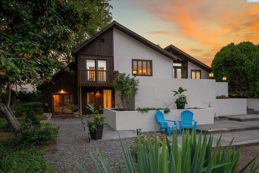 MLS# 287224 Private retreat near the heart of Red Mountain! This one-of-a-kind 3-bedroom, 3-bathroom home rests on 2.61 acres of vibrant grounds with rolling hill views, dreamy landscaping, and unmatched privacy, right where West Richland and Benton City meet. Inside, elevated ceilings, skylights, and picture windows flood the home with natural light and showcase the beauty of the property. The open kitchen features updated countertops, tiled backsplash, generous cabinetry, and a cozy wood stove that adds warmth and character. Just off the living space, a wet bar with beverage cooler makes entertaining effortless. The main level also includes a spacious bedroom, full bath, and laundry area for convenient main-floor living. Upstairs you’ll find a second living area, a bright nook perfect for a home office, and a sprawling primary suite with vaulted ceilings, multiple closets, a jetted tub, and a private deck to take in sweeping views of your pool and landscape. The third bedroom offers its own exterior entrance and courtyard, making it ideal for multi-generational living, guest space, or creative use. Attached to the home is a dedicated workshop with loft storage— perfect for hobbies, a home gym, or DIY projects. Outdoors, enjoy a covered patio with a hot tub, a beautiful fenced-in pool, chicken coop, and room to expand with space for a future shop. Plus, a NEW ROOF adds peace of mind! Whether you’re searching for your forever home or an investment opportunity, this property offers incredible flexibility— its location and amenities make it a compelling option as a short-term rental or even a private event venue. Set in a picturesque and secluded location yet just 10 minutes from Yoke’s Fresh Market, Swigg Coffee Bar, schools, and parks, you’ll enjoy both convenience and tranquility. A hidden gem in the Tri-Cities, it’s more than a home— it’s a lifestyle rarely found and impossible to replicate. Schedule your private viewing today!